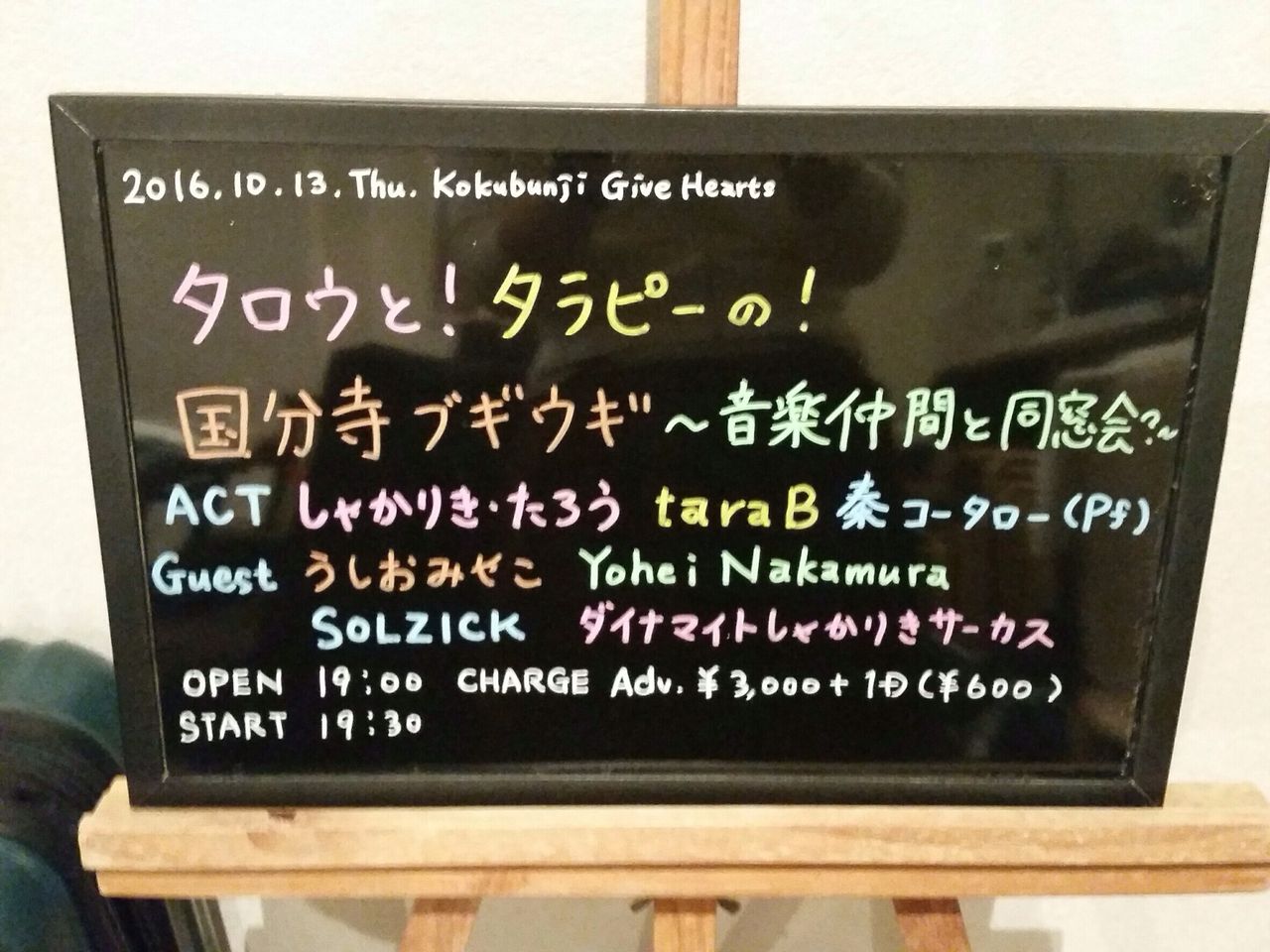 昨日は初めましての国分寺ギブハーツにて、こちらのライブへ。よく見たらタラビーがタラピーになってる笑。